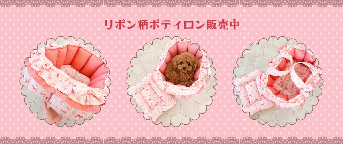 ●受注製作品 お振込み日から14日前後で発送いたします。 受注製作の場合、柄の出方が画像とは多少異なります。 ●商品について 持ち手付きのバスケット型ベッドです。 表生地はピンクベースにリボン柄、内側生地は濃いめのピンクにミニドット柄を使って作ります。 取り外しクッション1つ付き。 リードフック2つ付き。 ●追加可能オプション(有料) 以下のオプションが追加できます。 それぞれのオプションをポティロンと一緒にご購入ください。 ①リードフックを追加する → https://rosylife.theshop.jp/items/129704506 ②シートベルト通しを取り付ける → https://rosylife.theshop.jp/items/129704572 ③長さ調整&取り外しできる持ち手に変更する → https://rosylife.theshop.jp/items/129704735 ④ポティロン(大)専用 飛び出し防止巾着を取り付ける(生地お任せ) → https://rosylife.theshop.jp/items/129705063 ⑥ポティロン(大)専用 取り外しクッションを追加する → https://rosylife.theshop.jp/items/129705485 ●主な素材 コットン100% 生地 ポリエステル100% わた ●およそのサイズ 外寸:およそ55×45cm 内寸:およそ48×38cm 高さ:およそ20cm 持ち手の長さ:およそ50cm ※クッション性のある商品のため、サイズは多少前後します ●耐荷重 4〜5kg前後まで ※基本は床に置いて使用するベッドです、持ち上げて移動する際は十分にお気を付けください ●発送方法 「ゆうパック」で発送いたします。 ※商品代金とは別に送料が掛かります ●ご注文後にメールが届かない場合 ご購入後2日以上経ってもメールが届かないという方は、「お問い合わせ」よりご連絡くださいませ。 ※メールでのやり取りができない場合は、ご注文がキャンセルになることもございます ●お手入れ方法 水に濡れても問題のない素材を使用してますので丸洗い可能です。 ①優しく手洗い押し洗いし、陰干ししてください ②乾いた後に中の綿をほぐして整えてください ※乾燥機能のご使用はお控えください ※フリルやレース・リボン部分は繊細にできておりますので取り扱いにご注意ください