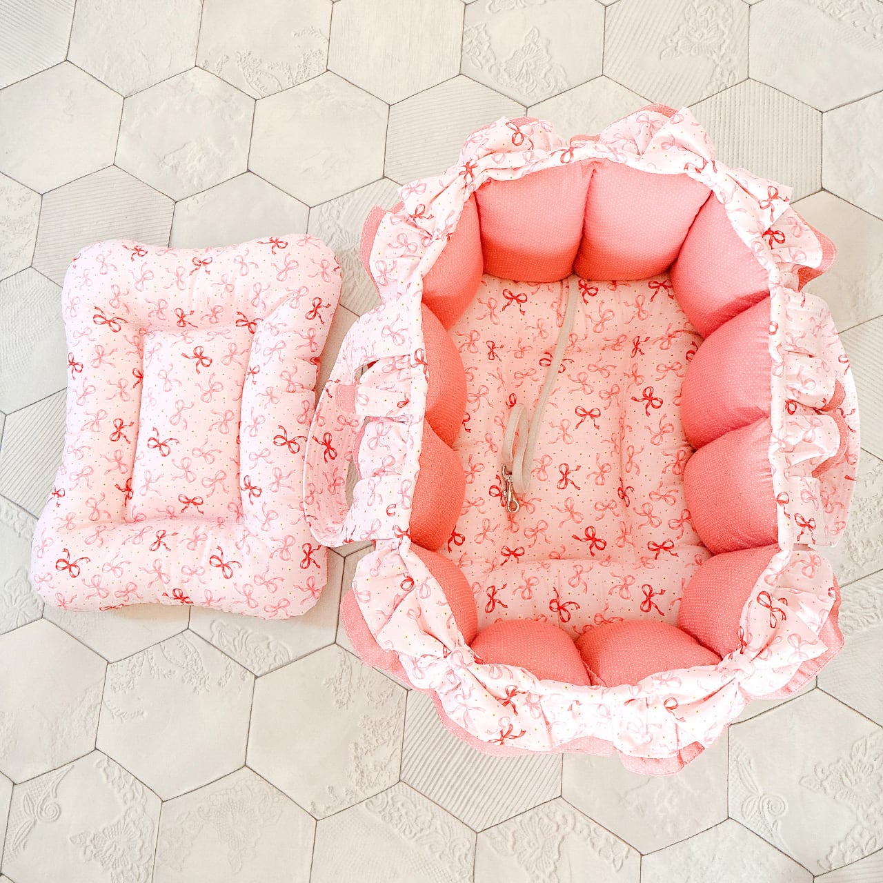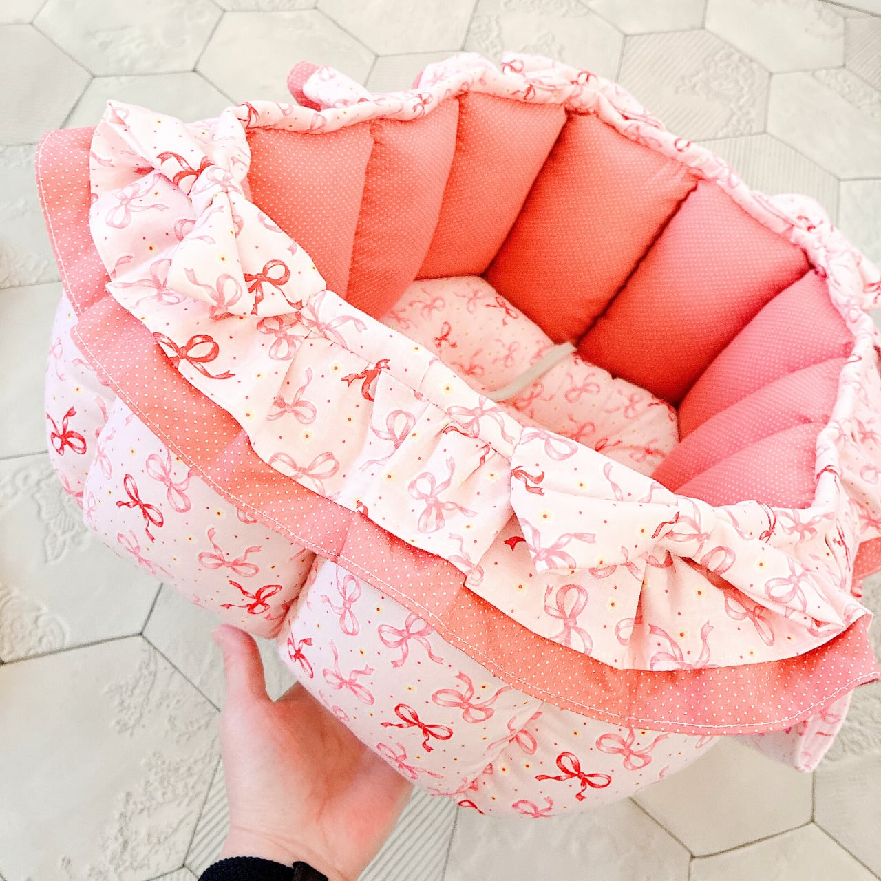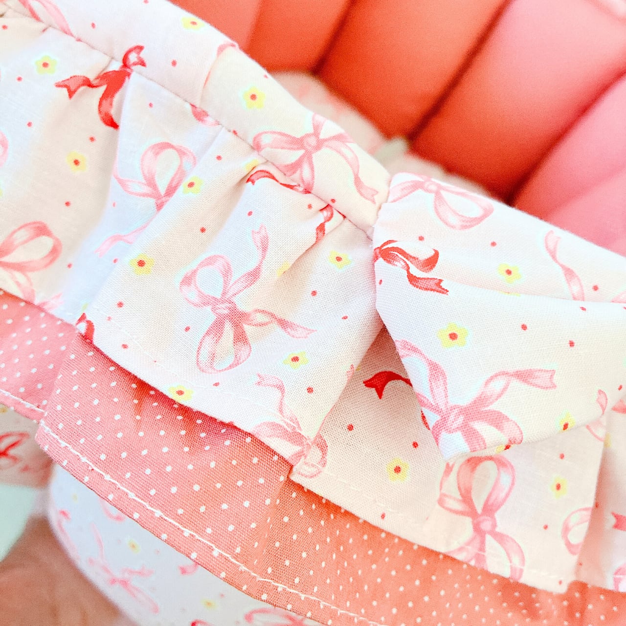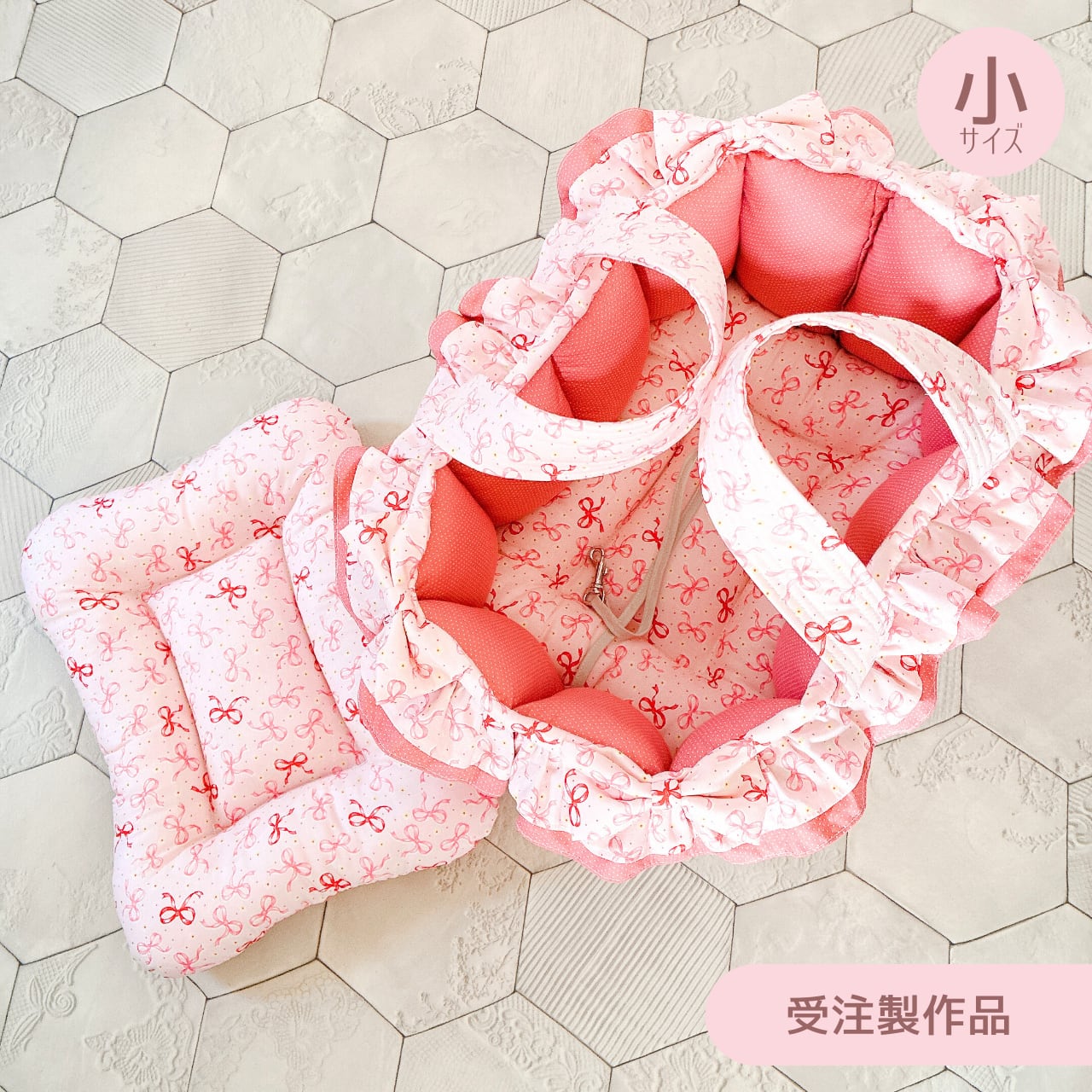 【受注製作品】ポティロン・バスケット(小) / リボン(取り外しクッション1つ・リードフック1つ付き)