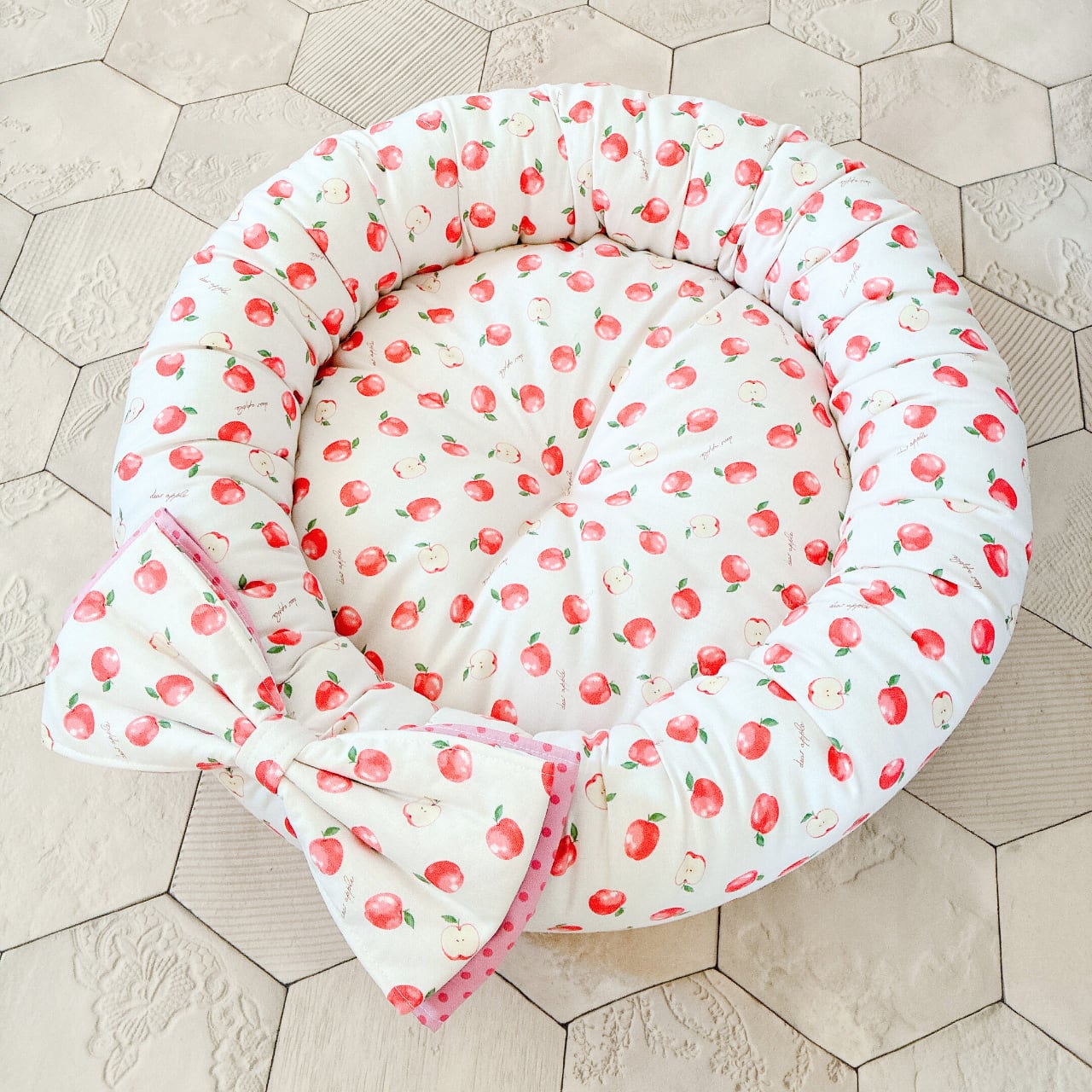 りんご柄生地をメインにして作りました。