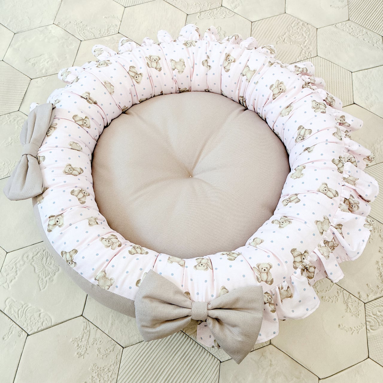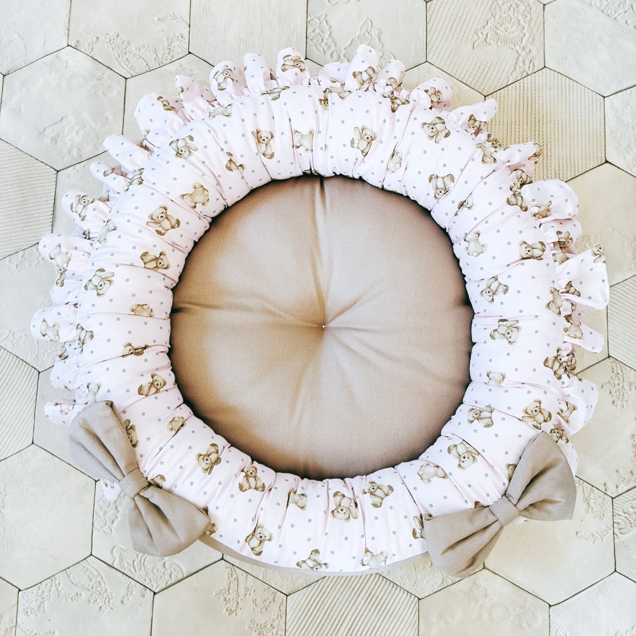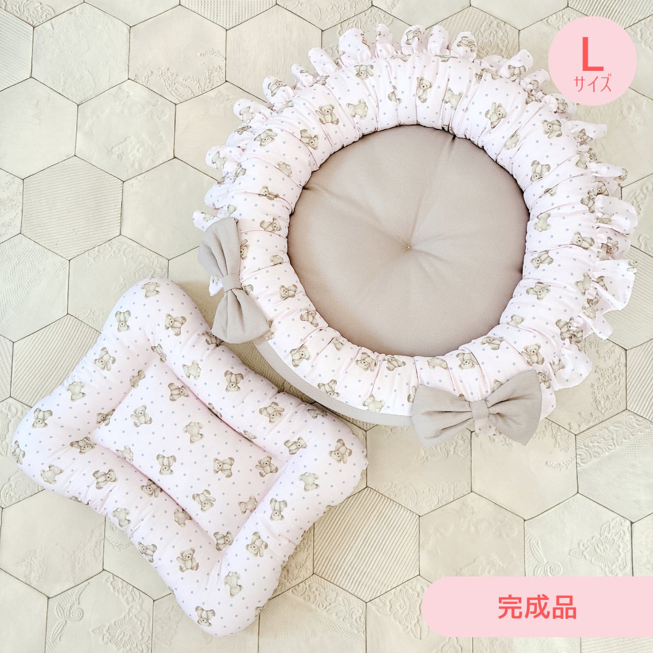 【完成品】ラウンドLとフラットマットのセット販売 / くま柄(ピンク)