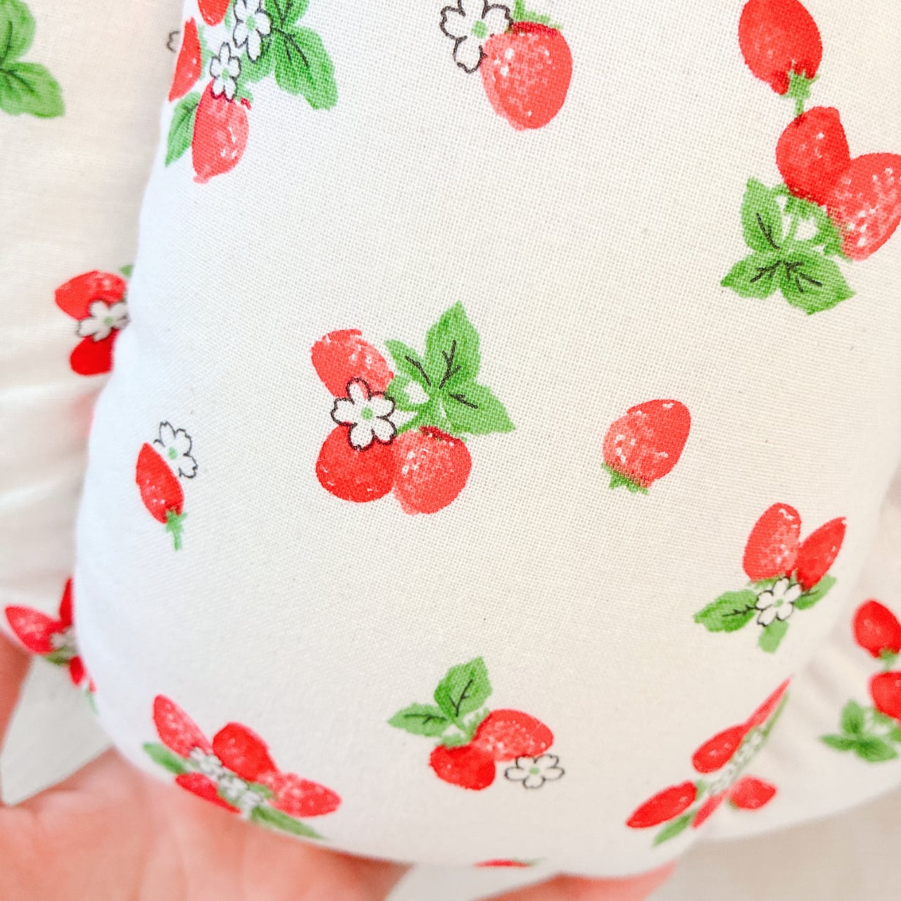 いちご柄生地と赤ベースにミニドット生地を組み合わせました。